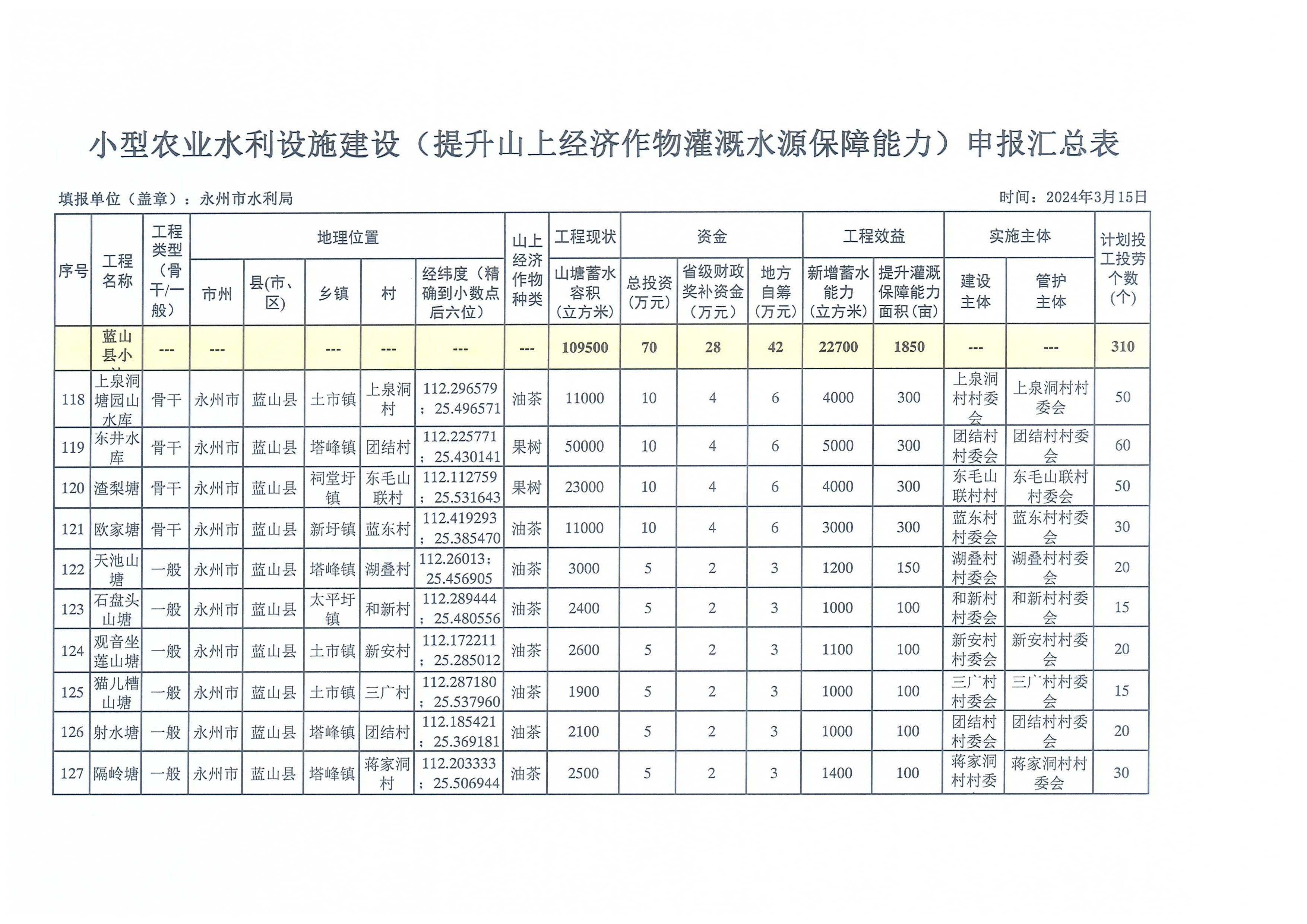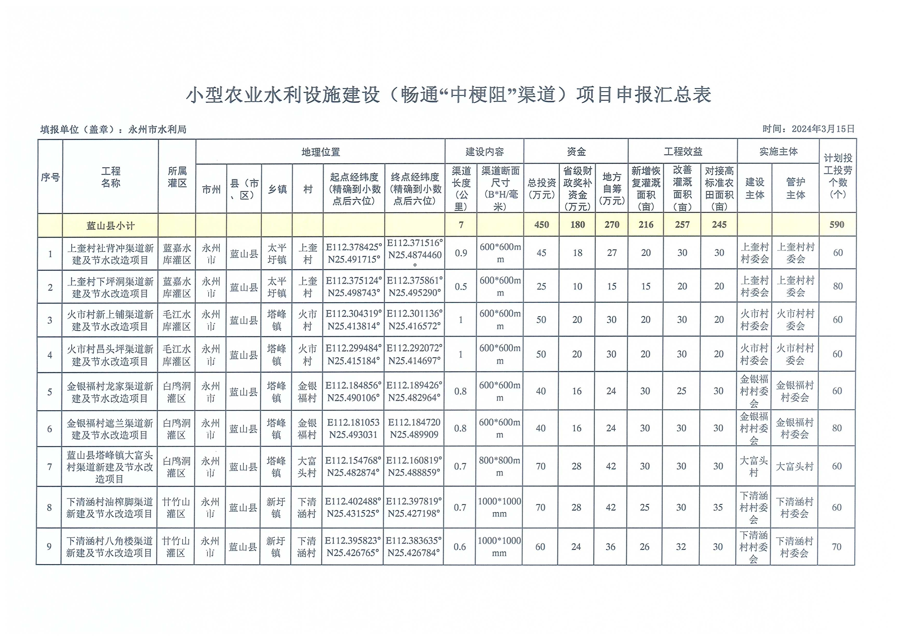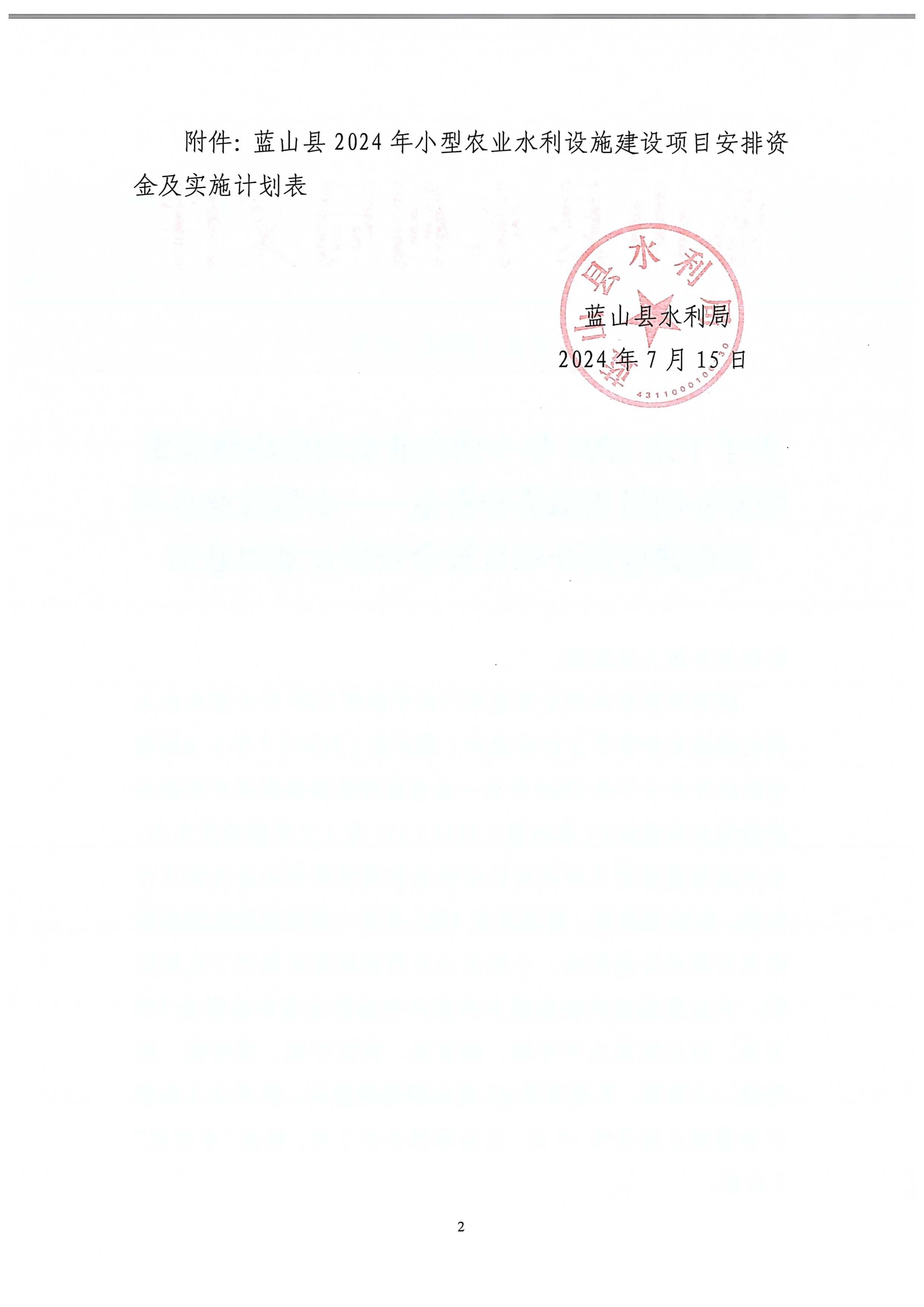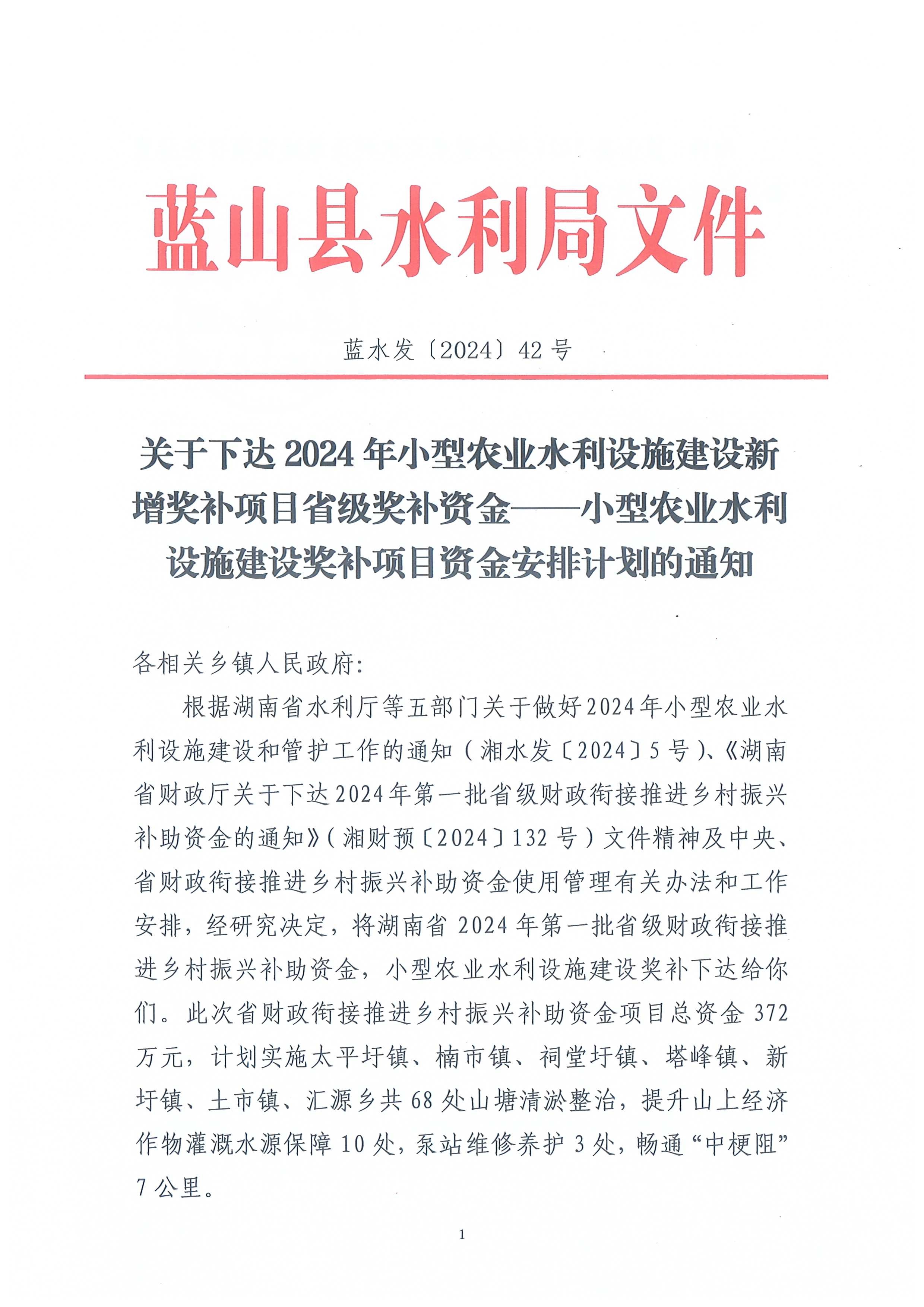关于下达2024年小型农业水利设施建设新增奖补项目省级奖补资金——小型农业水利设施建设奖补项目资金安排计划的通知